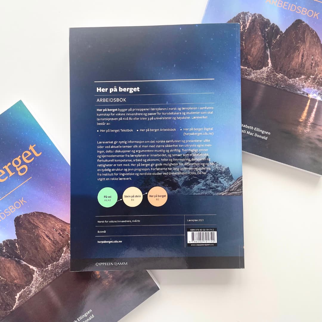 Her på berget (2024) has been thoroughly updated in line with the official Norwegian curriculum for adult immigrants and contains fresh, relevant content. The course emphasizes clear structure and steady progression, making it excellent preparation for the Norwegian language exam.