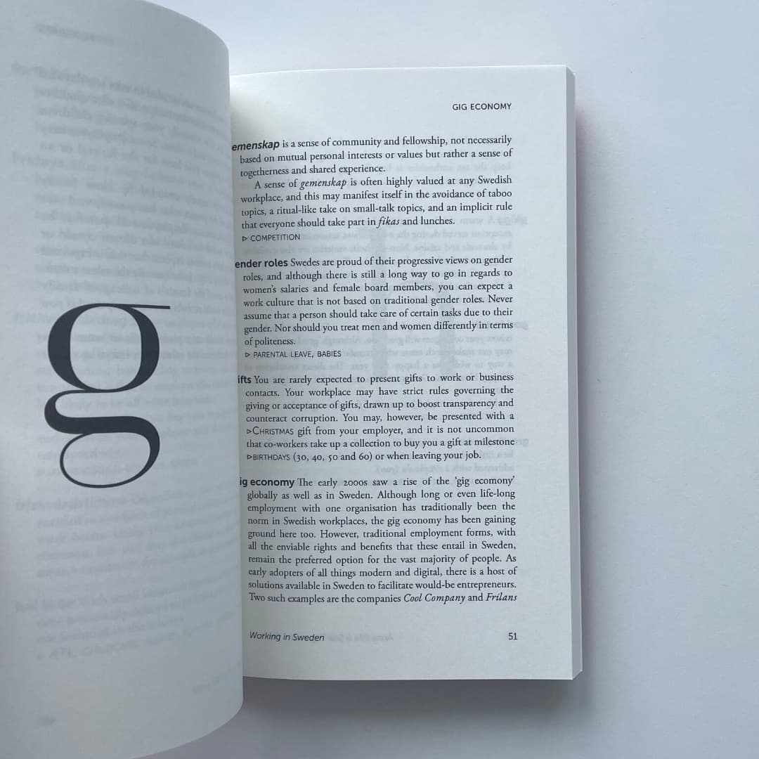 This is an excellent introduction for a new employee, as it answers questions that Swedish employers often take for granted, but which may be new to employees. The simple and practical format of the book makes it easy to find the relevant chapter, and the relaxed tone makes it enjoyable even for Sweden enthusiasts who simply want to learn more about work culture in the country.